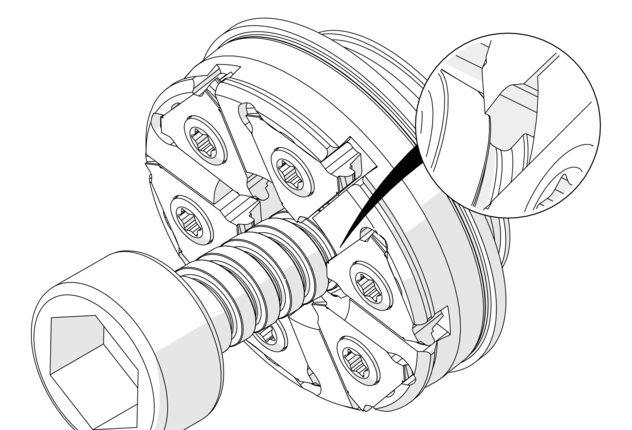 Tool group for thread whirling applications in medical technology, general massproduction as well as with „difficult-to-machine materials“. System contains highly precise indexable carbide inserts with three cutting edges with selected grades and a variety of matching whirling rings for different machines and driven units.